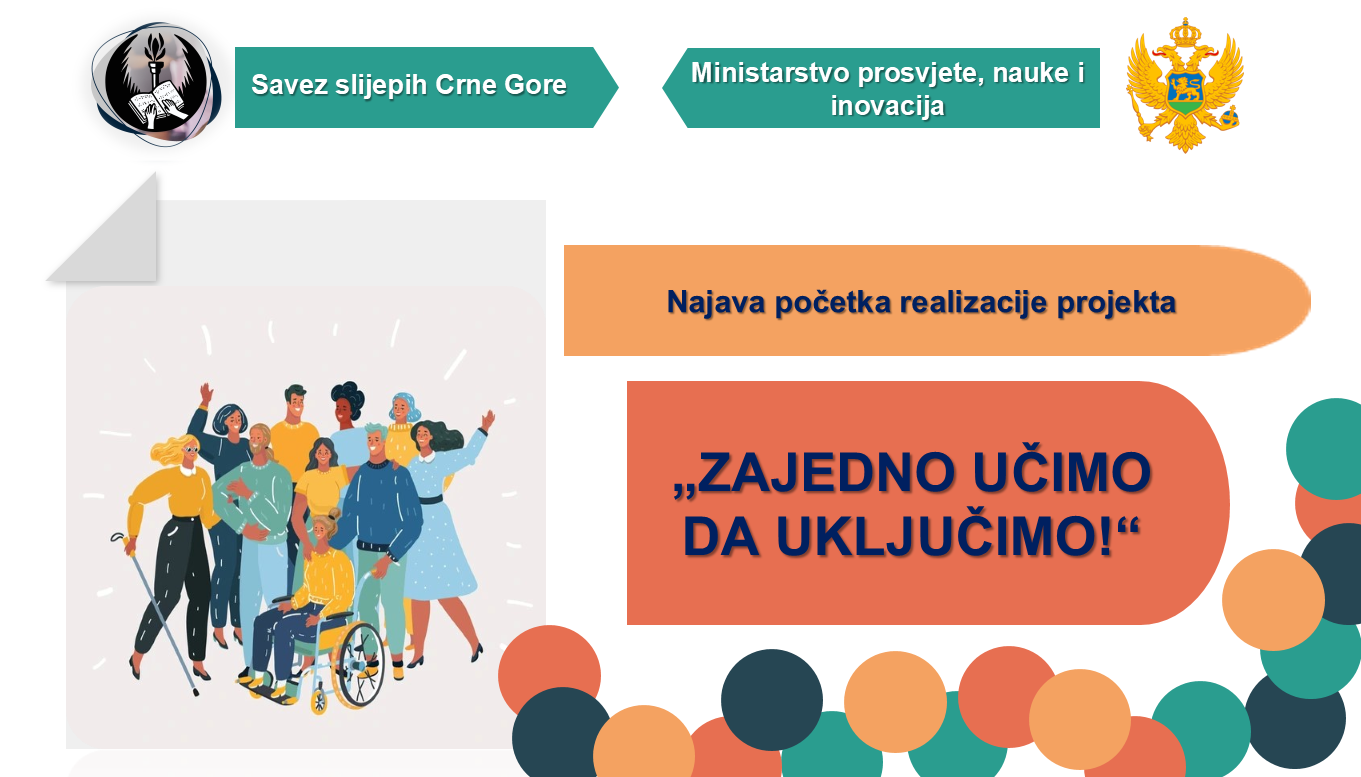 Savez slijepih Crne Gore potpisao je ugovor o sprovođenju projekta „Zajedno učimo da uključimo!“, čime zvanično počinje realizacija aktivnosti usmjerenih na unapređenje inkluzivnog obrazovanja u osnovnim školama širom Crne Gore.